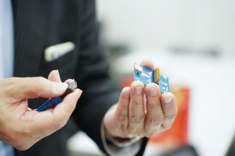 图:连接器企业将摩方设备打印的器件安装进工业电缆原型中